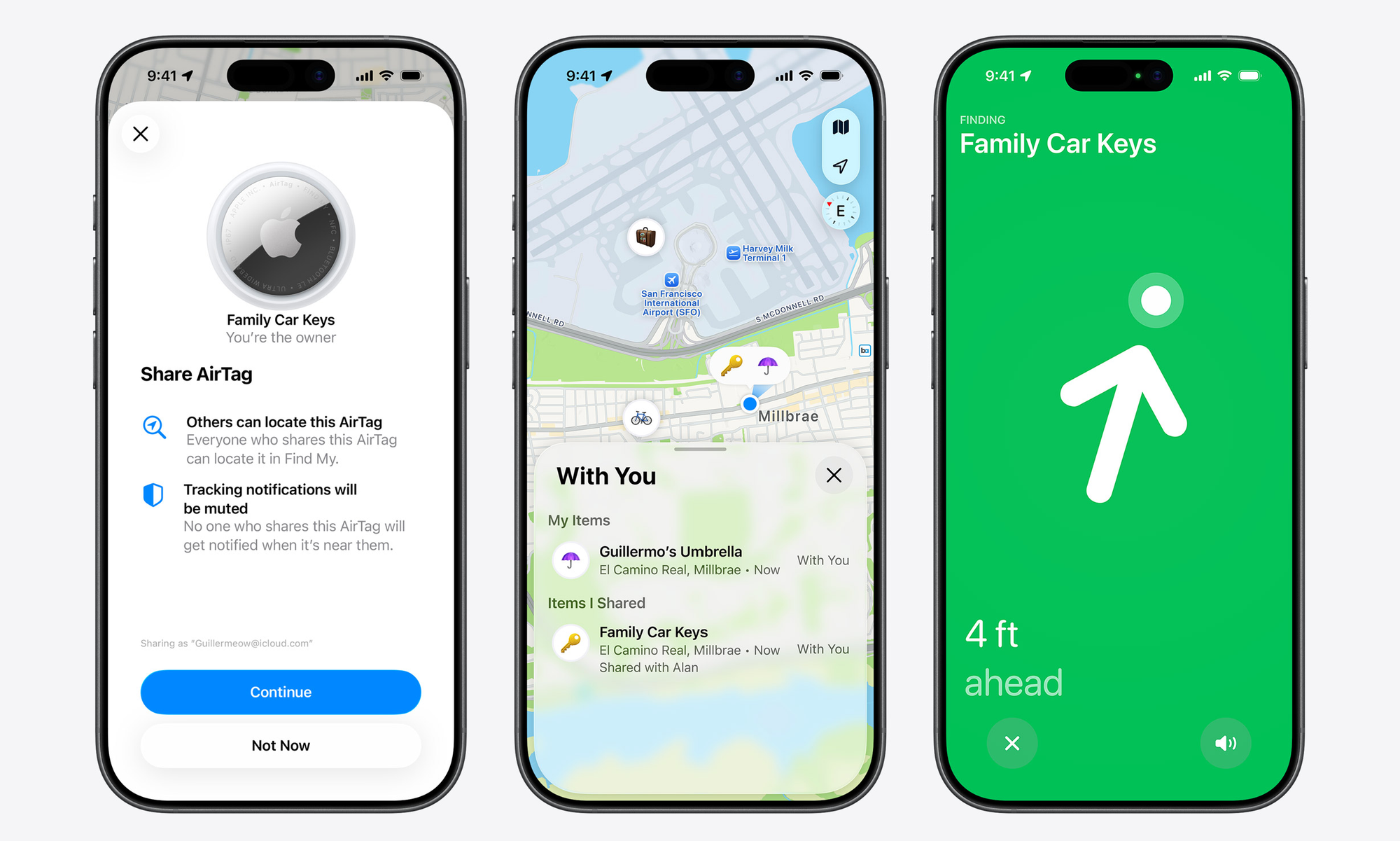- Funcionalidade "Partilhar Localização", de um item ganha também maior relevância, permitindo que os utilizadores partilhem temporariamente a localização de uma AirTag com terceiros de confiança, como companhias aéreas, para facilitar a recuperação de bagagem extraviada.