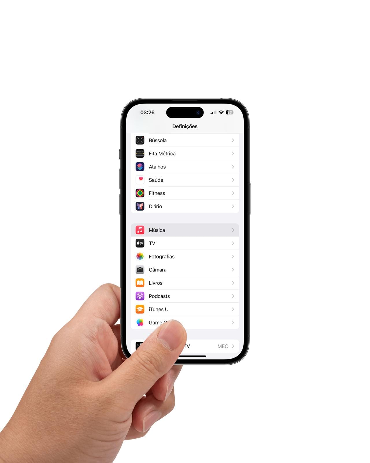 - Na barra de menus, em Música, clica nas Definições;