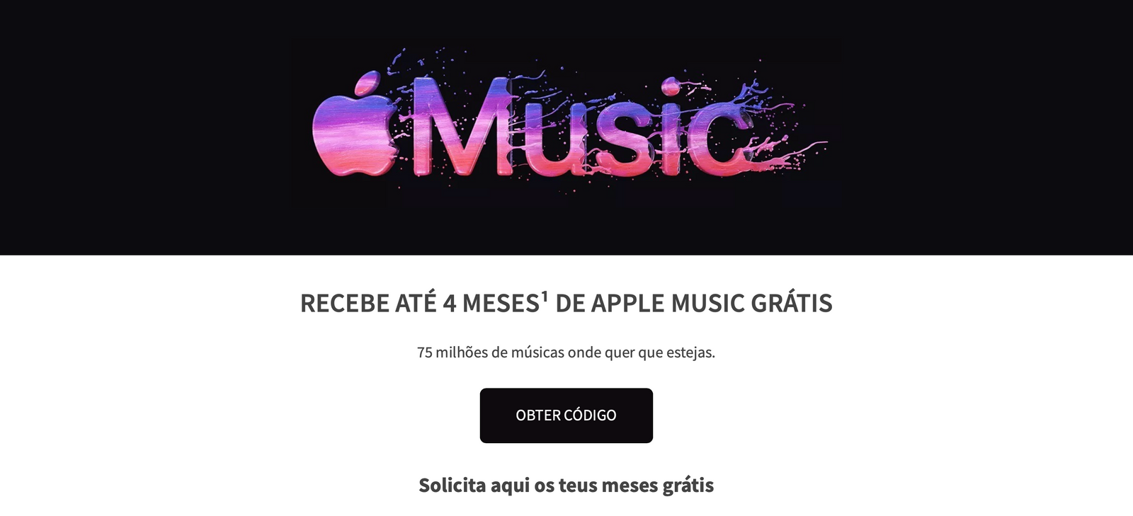A Media Markt oferece-te até quatro meses gratuitos de Apple Music, sem qualquer contrapartida! Para os reclamares, apenas tens de aceder a esta página dedicada e seguir as instruções apresentadas, que são bastante simples e diretas.