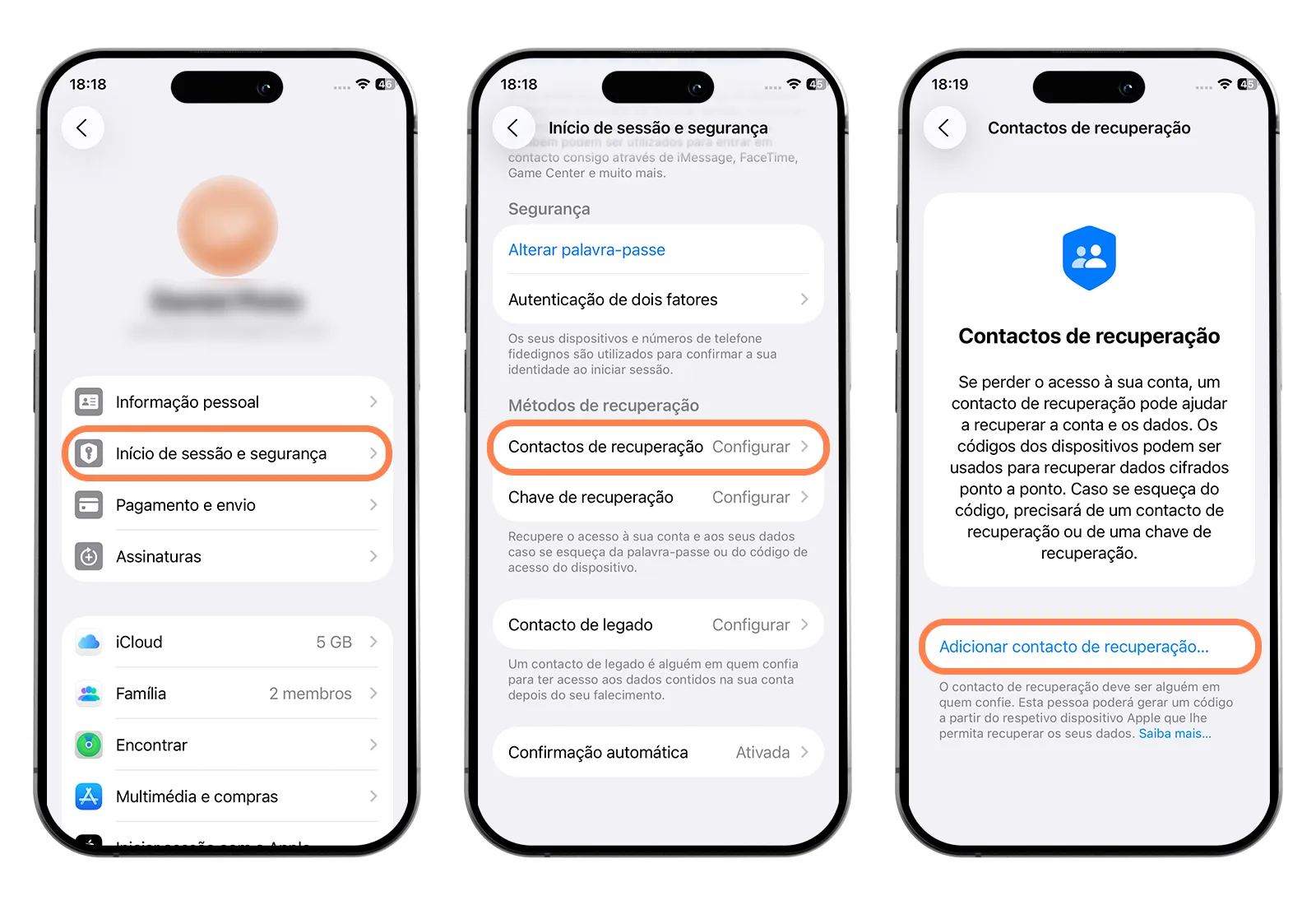 Como adicionar um contacto de recuperação no iPhone ou iPad