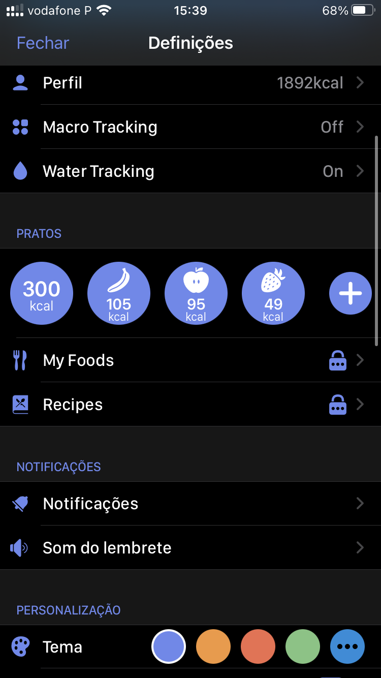 Fica a faltar apenas a menção à zona de definições da Calory, que é bastante completa e dá ao utilizador a hipótese de personalizar todos os aspetos da aplicação, quer relativos ao funcionamento da mesma, quer meramente estéticos. É aqui também que a gestão da subscrição pode ser efetuada. Podem ser criados atalhos, para posterior uso com a Siri, assim como widgets com a informação que for mais importante para o utilizador.