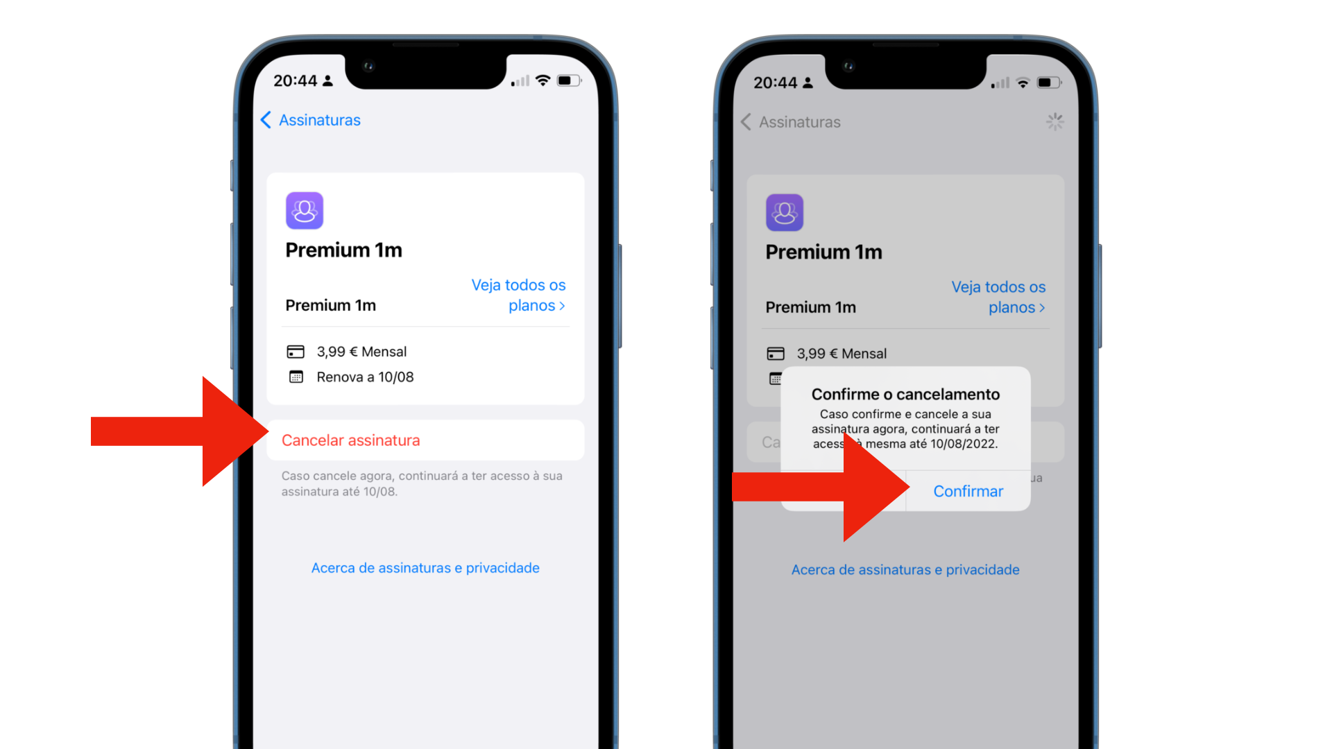 3. Após identificares a assinatura ativa que queres cancelar, toca em "Cancelar Assinatura" e depois em "Confirmar" no pop-up.