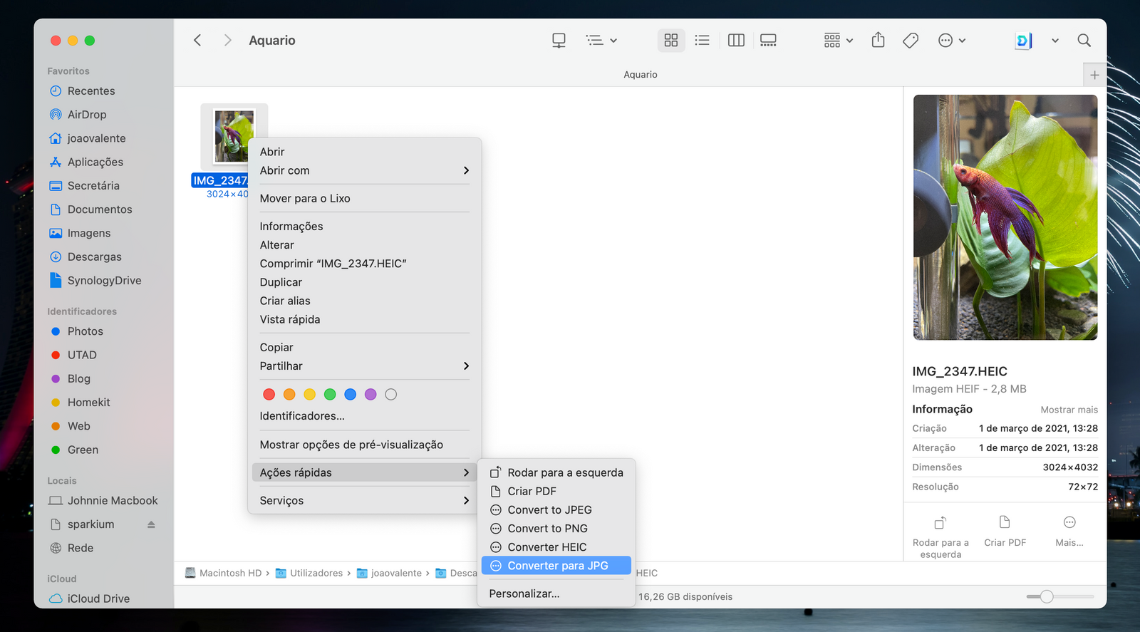 Agora, cada vez que transferires uma imagem do teu iPhone para o teu Mac podes convertê-la para JPEG ou PNG em segundos com apenas dois cliques!