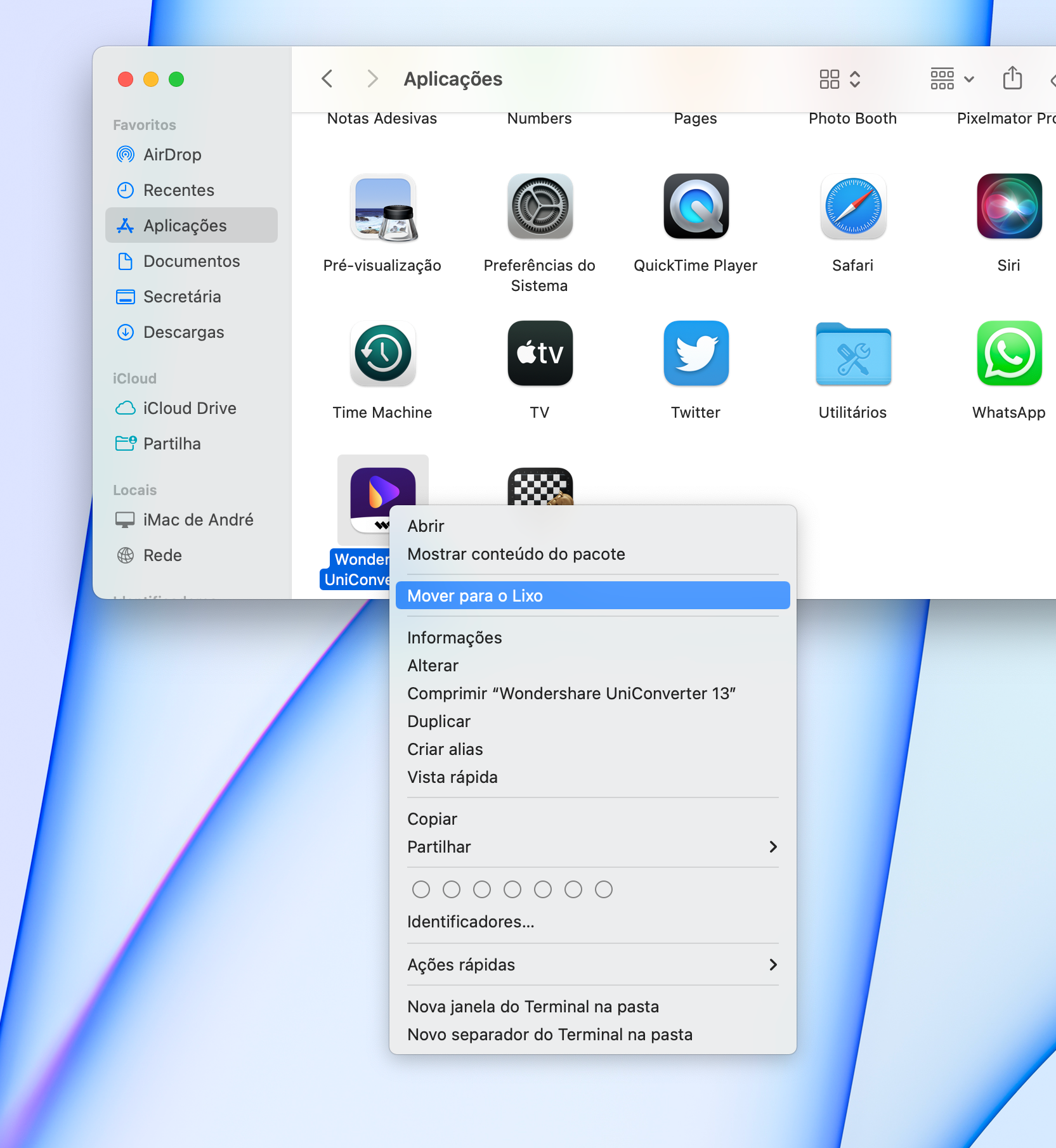 Para tal, abre o Finder e, de seguida, a pasta Aplicações. Nessa pasta aparecem todos os programas/aplicações instaladas no teu Mac. Para desinstalar basta clicares com o botão direito do rato (ou com dois dedos no teu trackpad) e selecionar a opção "Mover para o Lixo". A aplicação irá desaparecer da pasta. Para ela desaparecer do Mac é só esvaziares o Lixo do Mac.