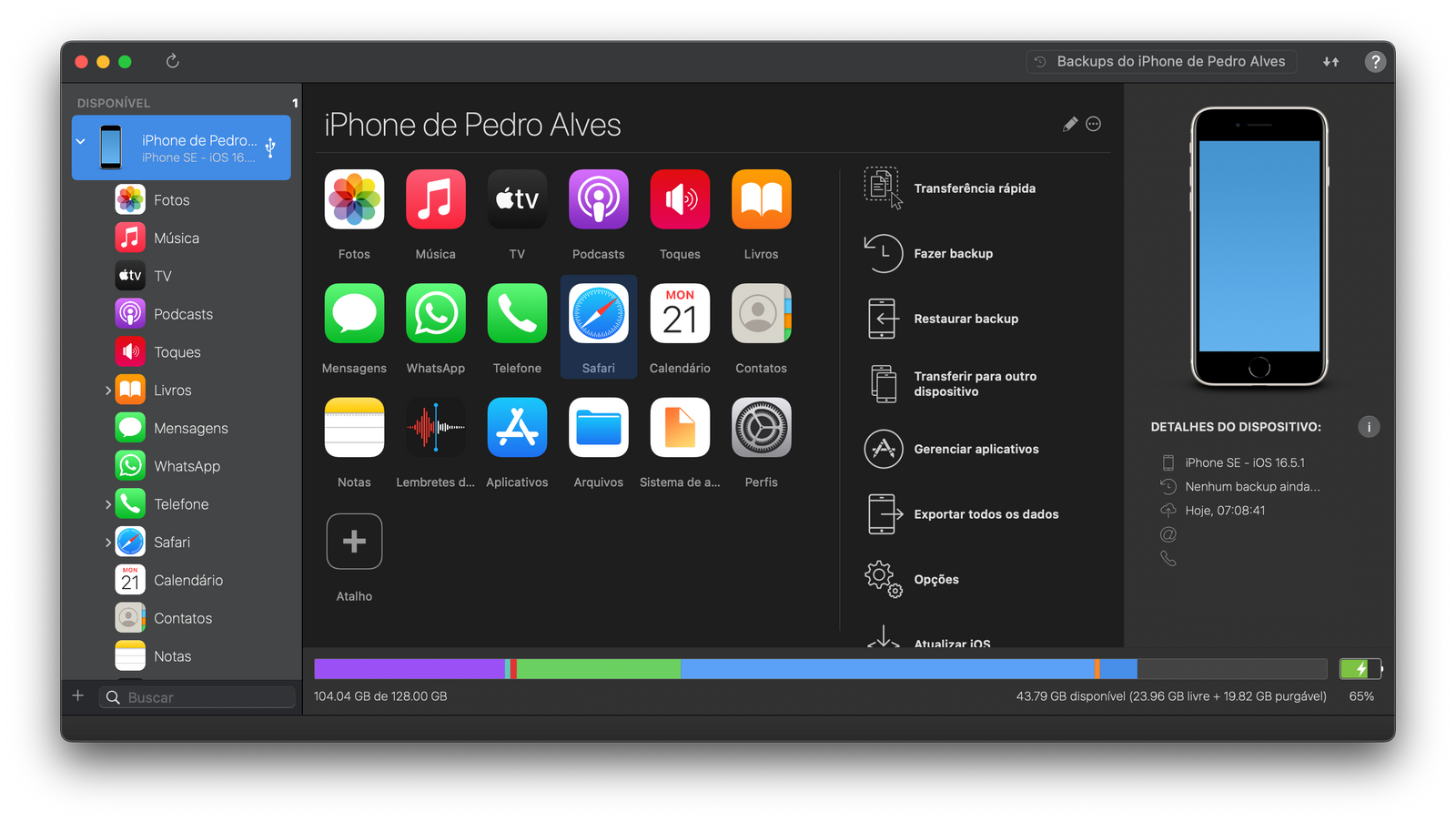 - Instala e abre o iMazing no teu computador, conectando posteriormente o teu iPhone ao mesmo;