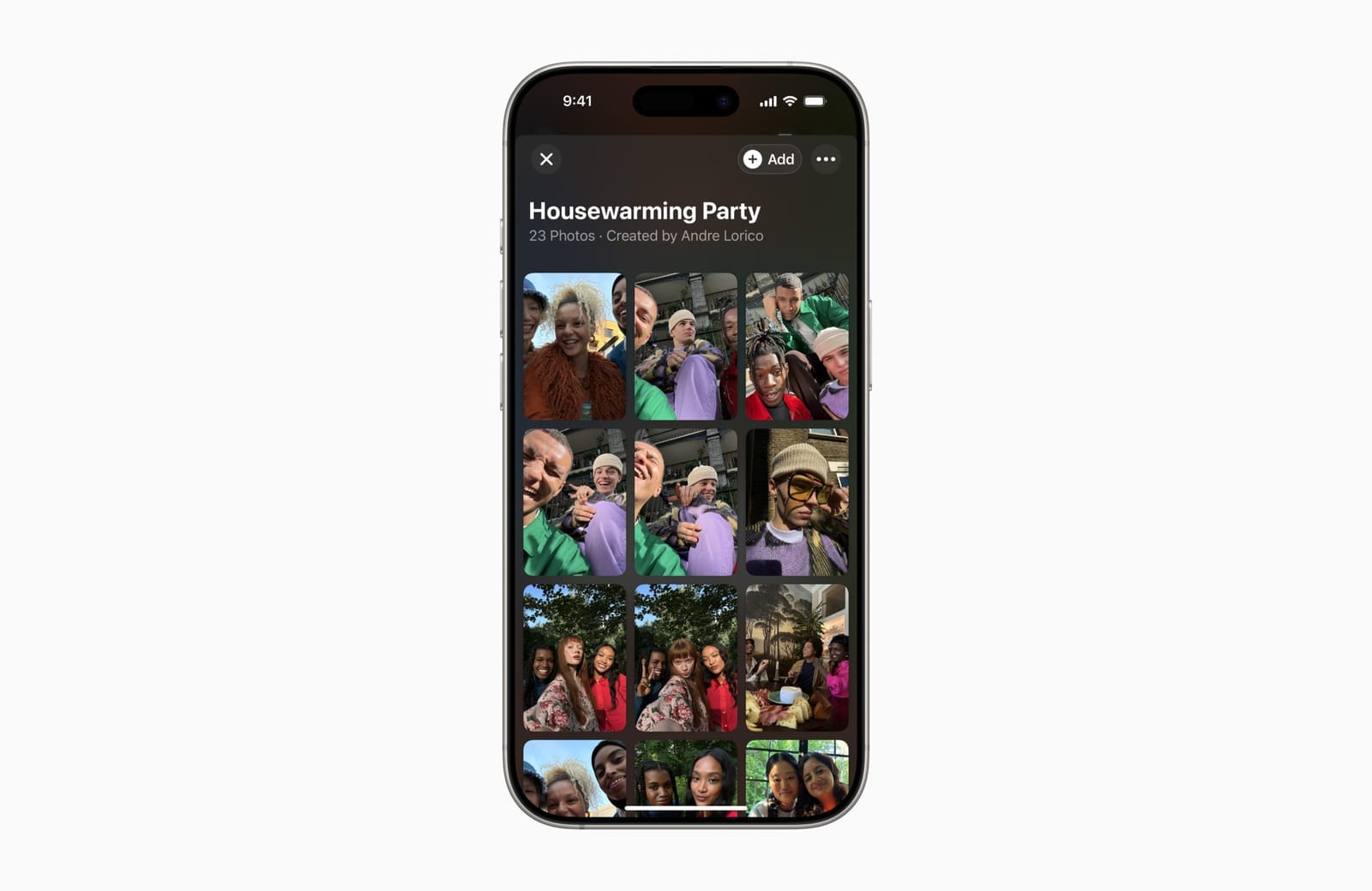 Mas há mais: cada convite inclui um álbum partilhado, onde todos podem adicionar fotos e vídeos para registar os melhores momentos. Se fores subscritor do Apple Music, podes criar uma playlist colaborativa, uma espécie de banda sonora personalizada para o teu evento, acessível diretamente através da app.