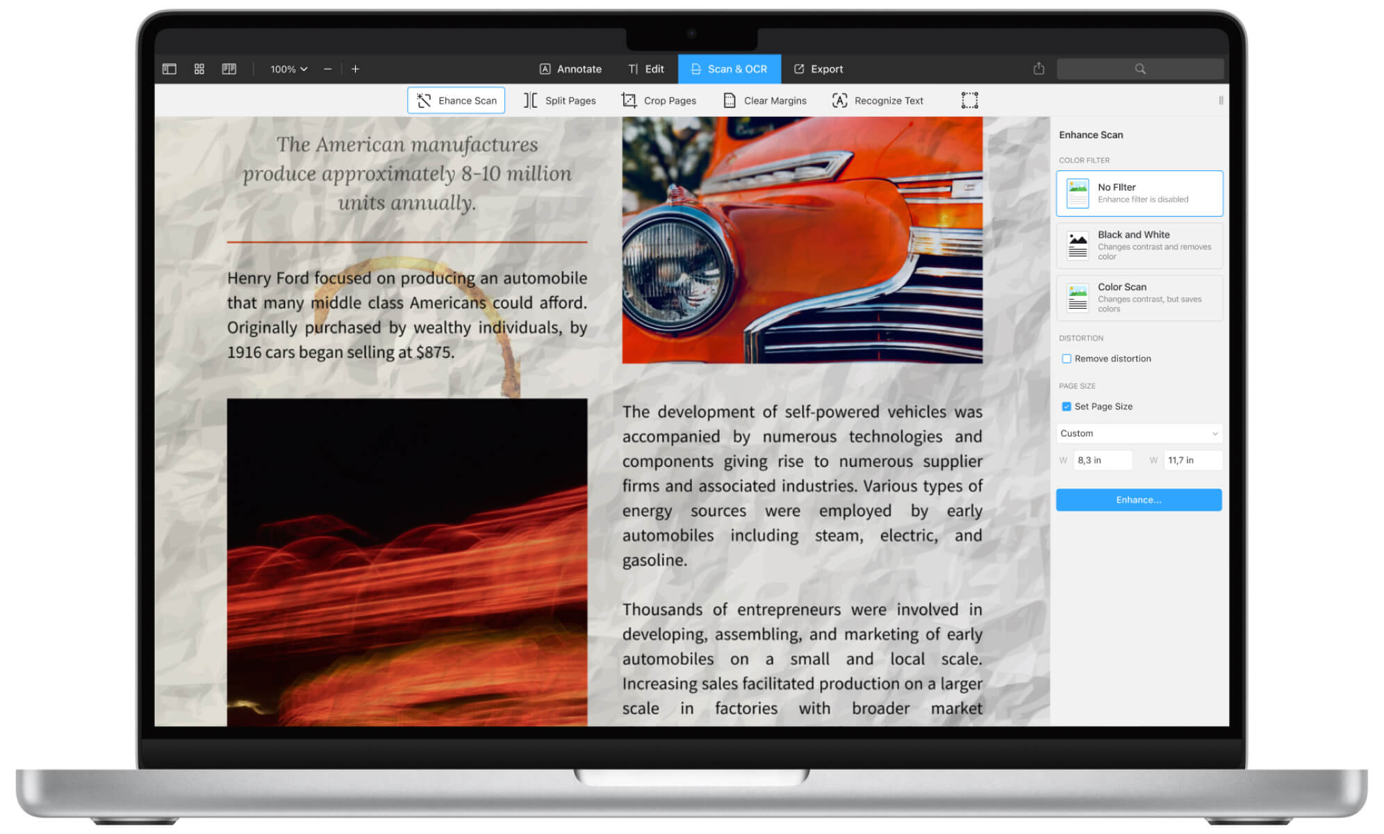 Outro recurso que é raro de se encontrar é a capacidade de trabalhar com páginas completas dentro de um mesmo documento. É possível reorganizar a sua ordem, fundir, rodar, e até apagar páginas individuais, como se fossem slides de uma apresentação. No caso de estarmos perante ficheiros mais antigos, a capacidade de OCR e de melhoramento de qualidade assegura-se de ler e interpretar todo o texto, e posteriormente de o alocar num novo e moderno documento.