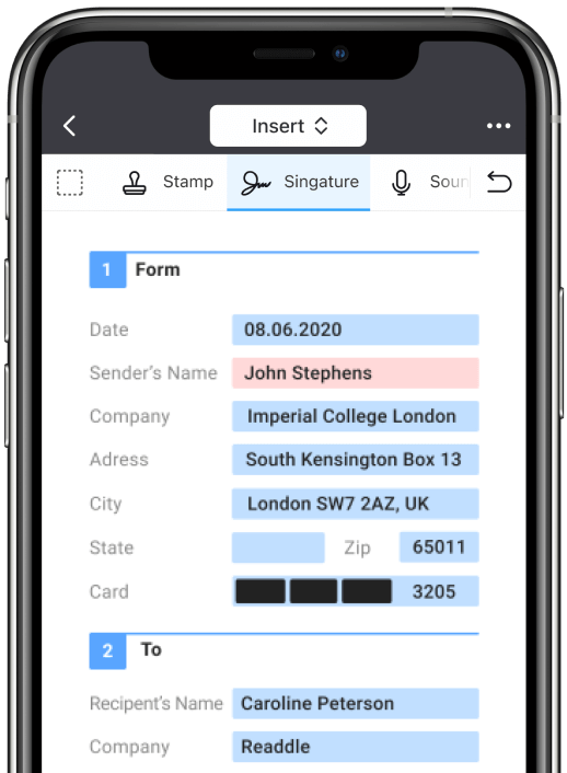 Os formulários são algo com que o PDF Expert também é capaz de lidar com exímia perfeição. Todos os campos editáveis podem ser preenchidos com a informação solicitada, dando um ar mais profissional ao resultado final, quando comparado com o preenchimento manuscrito. Além disso, evitam-se erros de leitura provocados por caligrafias de difícil compreensão.