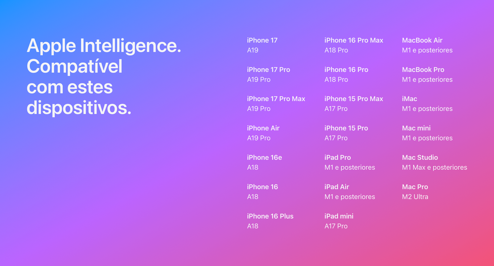 A Apple acabou de abrir as portas aos programadores para as primeiras versões beta das suas próximas atualizações - iOS 26.1, iPadOS 26.1, macOS Tahoe 26.1 e companhia - e há uma novidade que se destaca em território nacional: o tão aguardado suporte ao português de Portugal na Apple Intelligence!