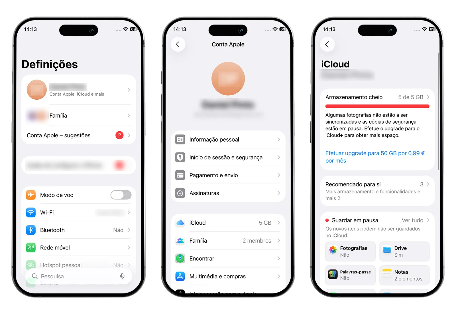- Acede a Definições > Apple ID > iCloud