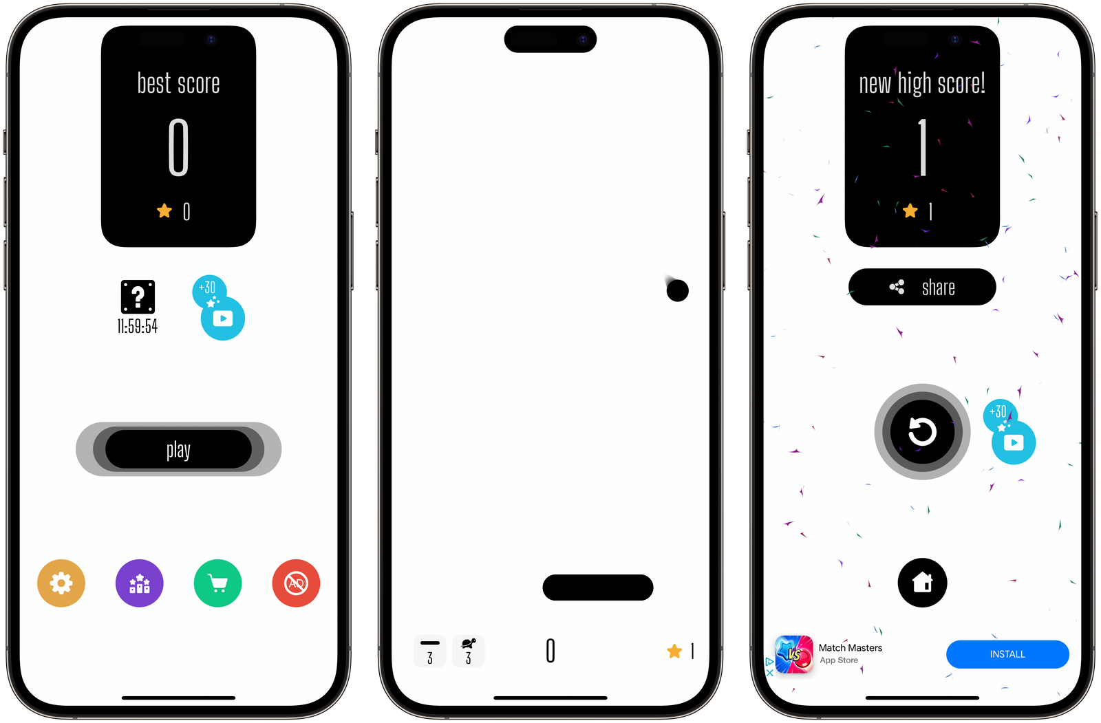 Assim que entras na app, salta logo à vista um design minimalista extremamente agradável. Quando começas a jogar, a combinação entre a responsividade, o toque háptico e os efeitos sonoros despertam-te aquela sensação de não querer parar.