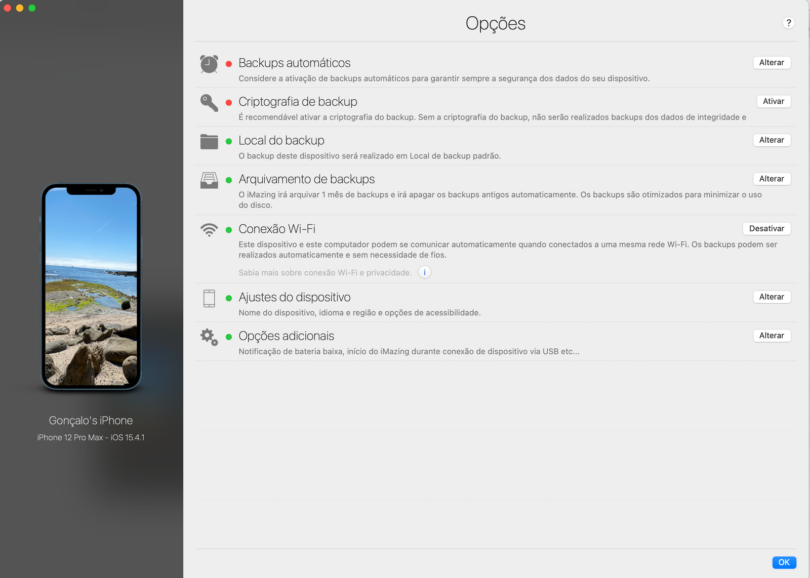 As não menos importantes secções do iMazing