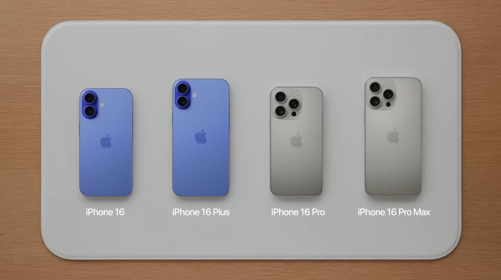 Desta feita os modelos 16 Pro e 16 Pro Max surgem com os ecrãs ligeiramente maiores que os modelos 16 e 16 Plus, o que é uma novidade relativamente aos anos anteriores.