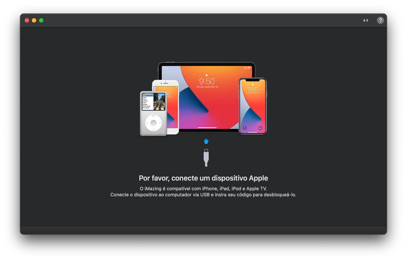 - Instala o iMazing, abre-o e liga o teu iPhone;