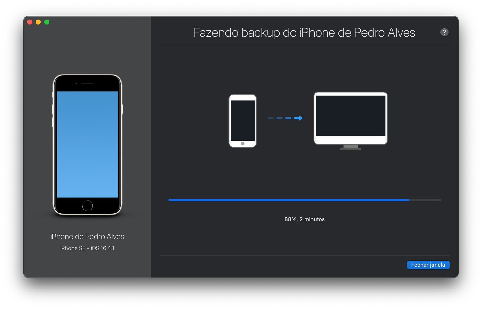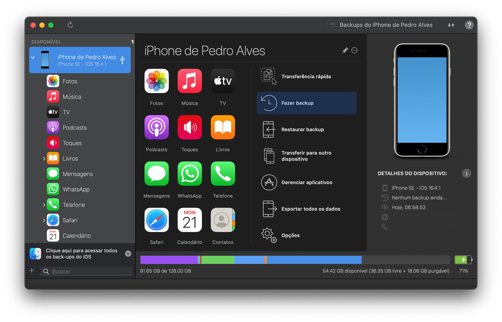 - Escolhe o teu iPhone na barra lateral esquerda e clica em "Fazer backup"; se o teu iPhone pedir para inserires o código de desbloqueio, é normal: podes inserir sem qualquer tipo de preocupação;