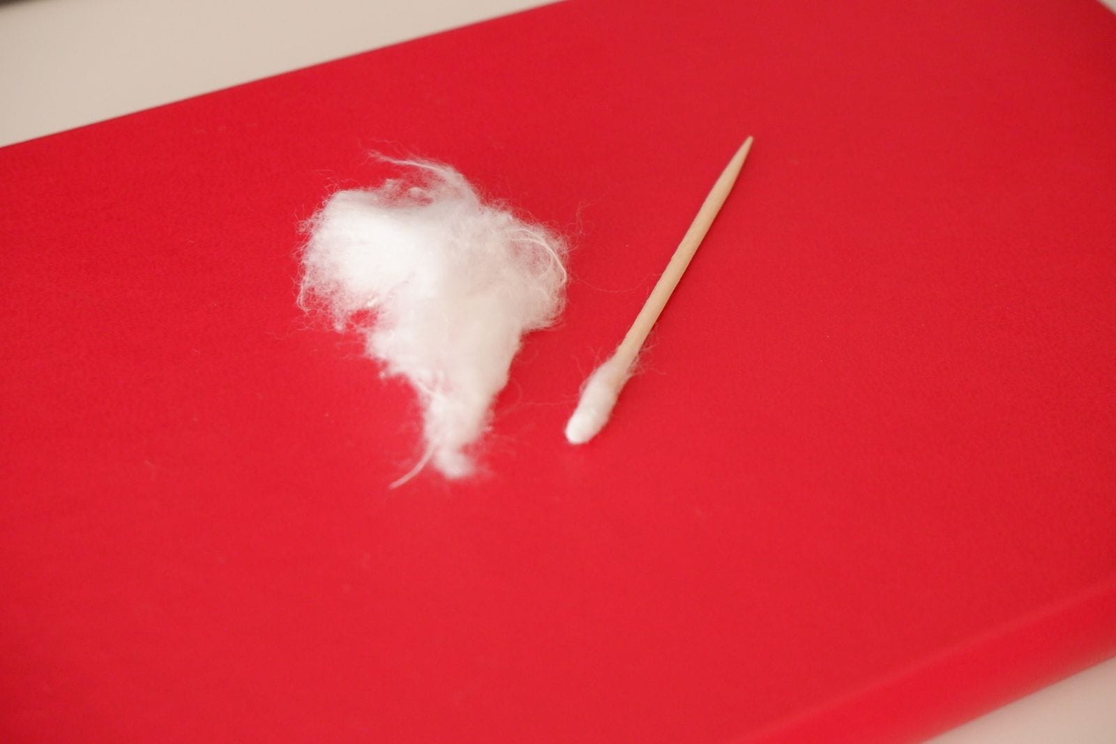 - Se estiveres a utilizar algodão, coloca um palito no algodão e torce até que ele pegue e comece a enrolar em volta do palito (usa apenas uma pequena quantidade);