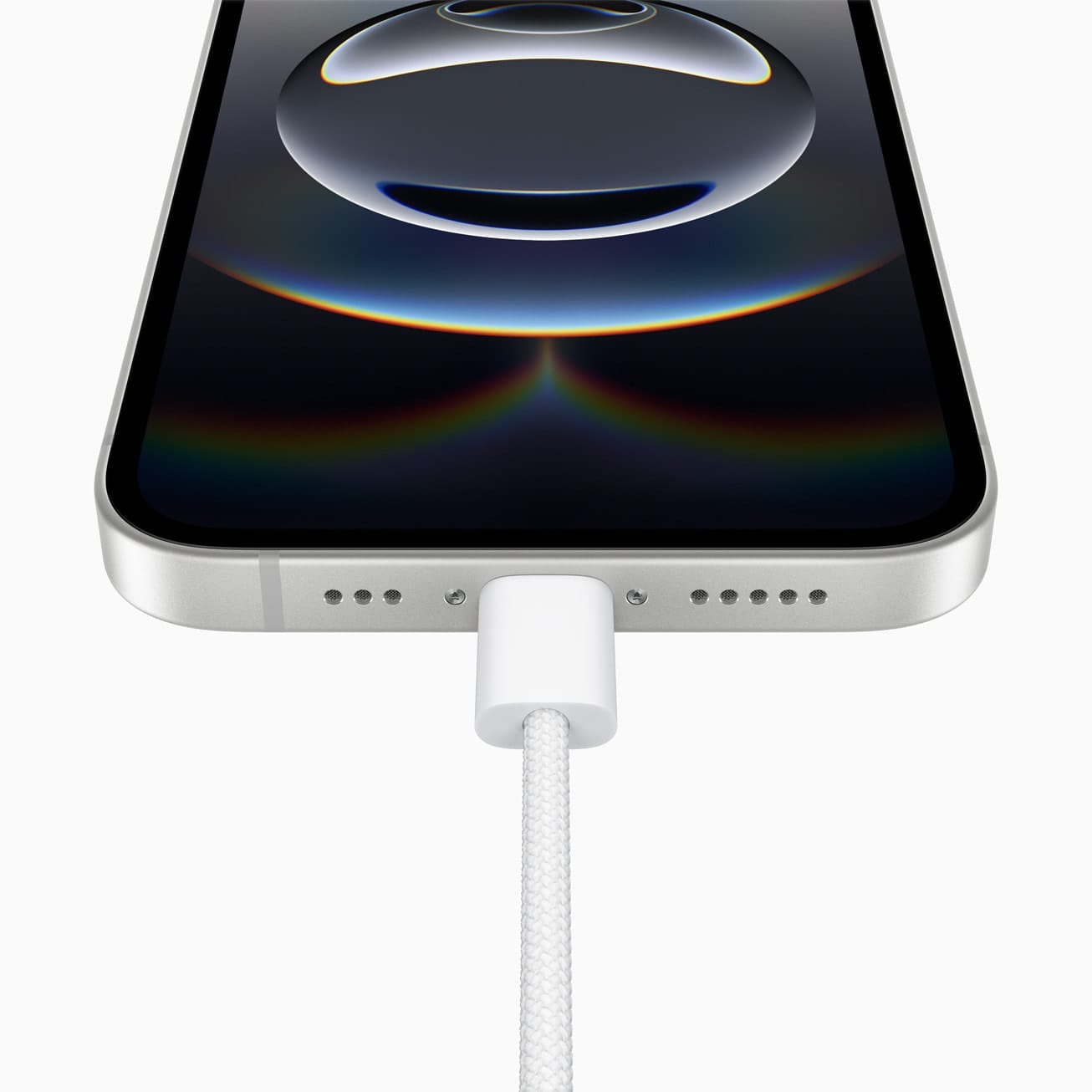 E o carregamento? USB-C! A Apple seguiu as regras da UE e disse adeus ao Lightning de vez. Para quem estava na expectativa, nada de MagSafe, mas pelo menos ainda dá para carregar sem fios via Qi a 7.5W.