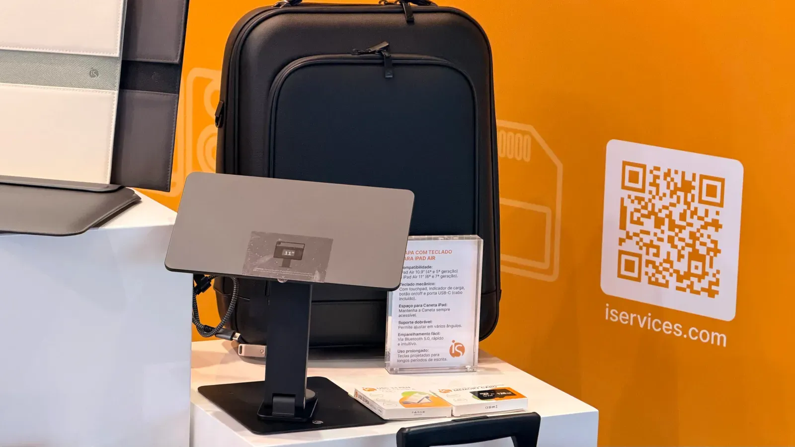 O stand da iServices tem atraído a atenção dos participantes apresentando várias novidades, entre elas, os novos powerbanks MagSafe, capas teclado para iPad, mochilas, headphones e muito mais, bem como produtos voltados para a eficiência energética.