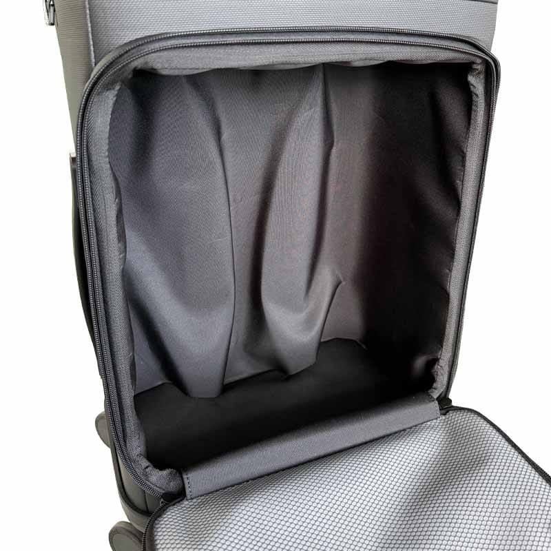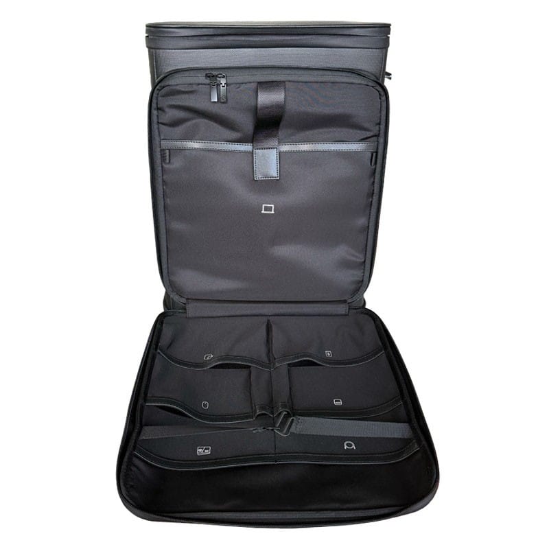 No interior encontramos vários compartimentos para roupa, portátil, tablet, acessórios e higiene pessoal - tudo organizado, sem improvisos de última hora.