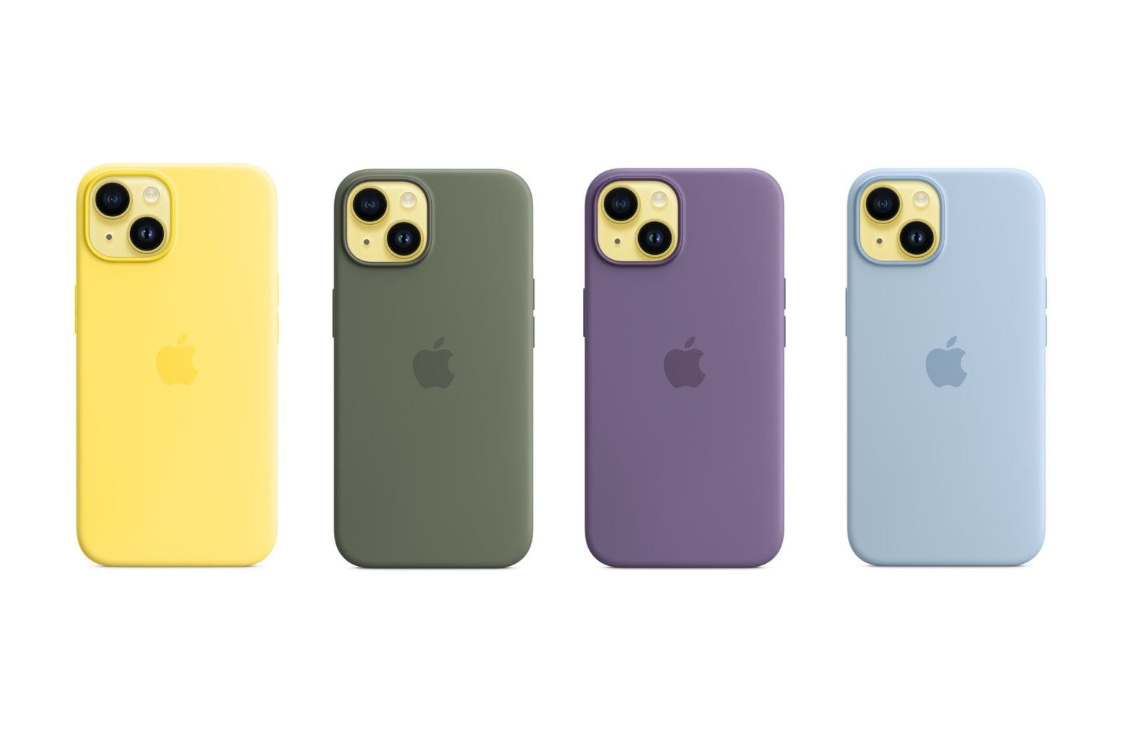 A Apple está ainda a lançar novas cores para as capas de silicone para os iPhones 14 e 14 Plus, incluindo um amarelo canário que combina na perfeição com o novo amarelo dos iPhones e ainda os tons azeitona, íris púrpura e céu.