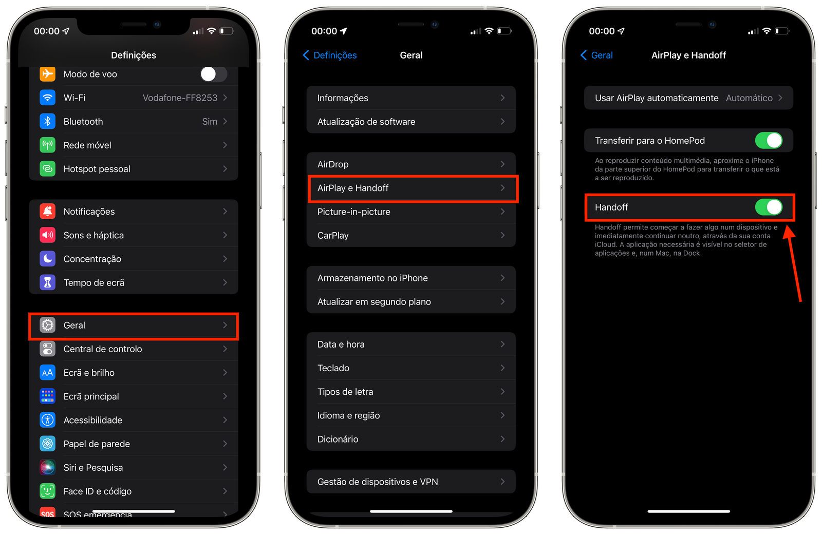 - Ativa "Handoff".