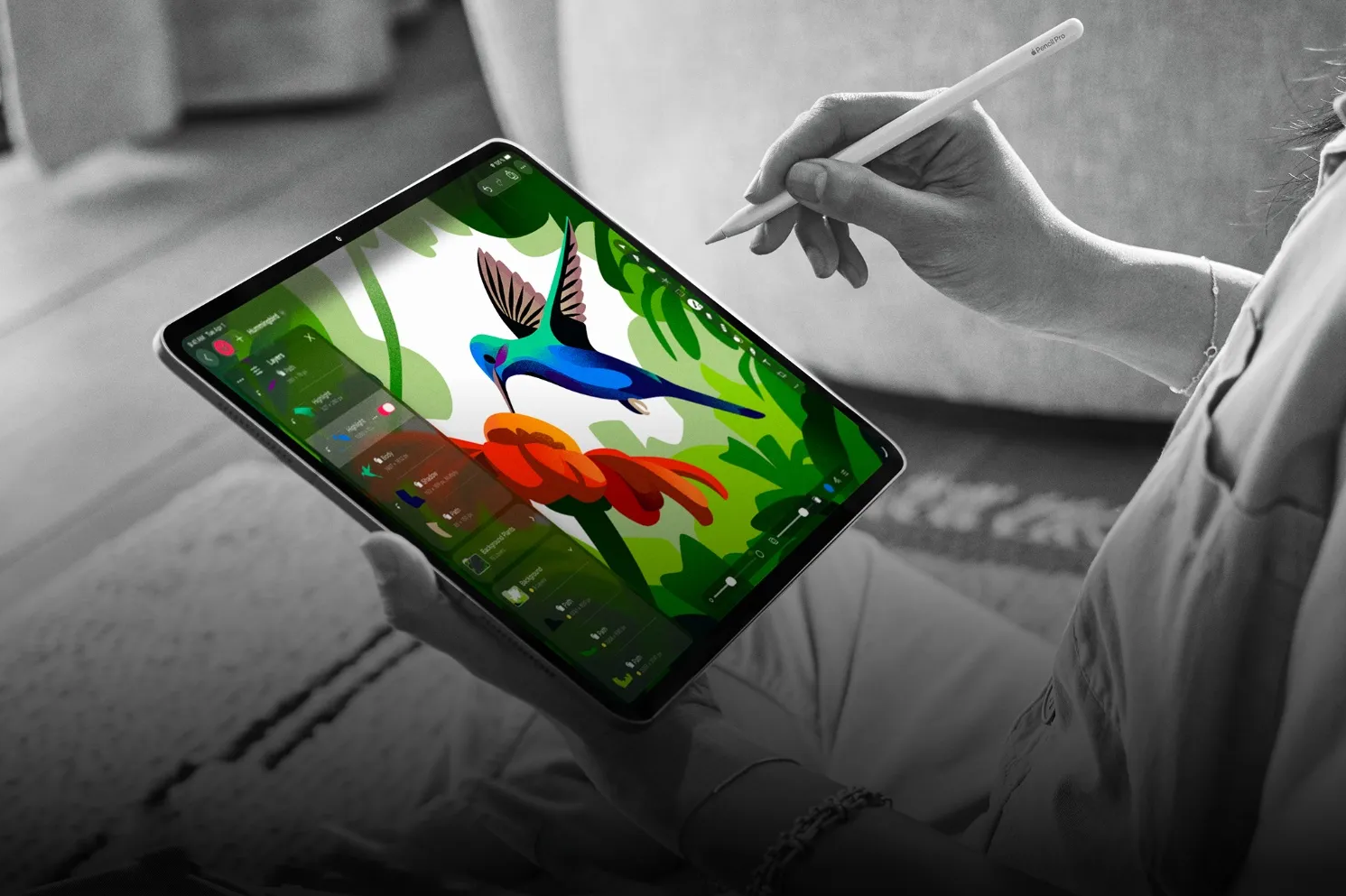 Ora, mas o que é que o Pixelmator Pro para iPad permite fazer? Em grande medida, e pelo facto de ter sido redesenhado para iPad e uso através do toque no ecrã, apresenta ferramentas de design, fotografia, pintura e ilustração totalmente otimizadas para interação tátil, bem como suporte total para o Apple Pencil, incluindo hover, squeeze, duplo toque e rejeição da palma. Para além disso, permite a importação direta de fotografias da câmara do iPad como novas camadas, bem como a integração entre iPad e Mac, com sincronização via cloud para retomar projetos em qualquer dispositivo.
