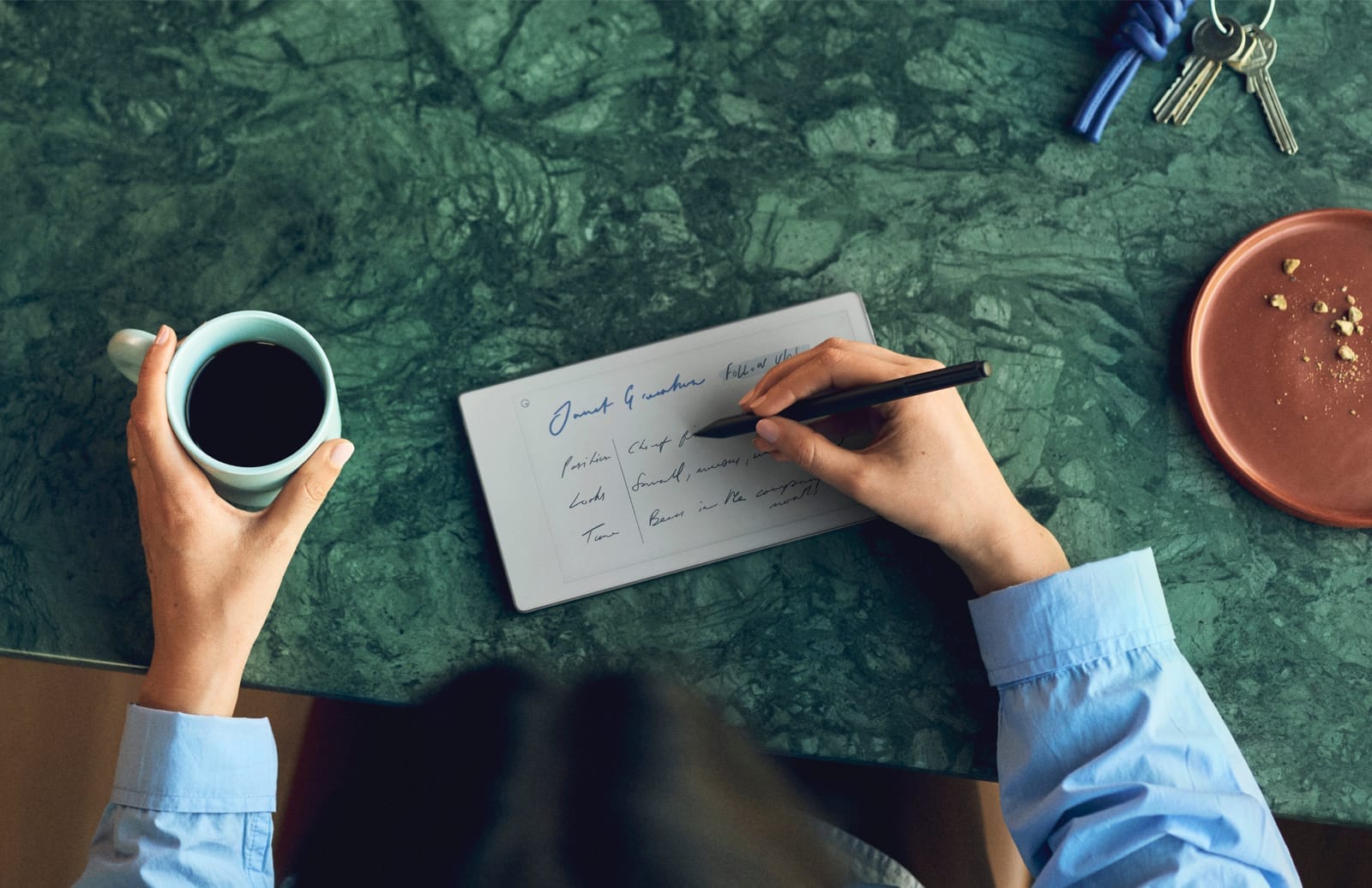 O ecrã Canvas Color de 7,3’’ foi desenhado para imitar a experiência do papel, sem reflexos e sem cansaço visual, e ainda vem com uma luz ajustável para trabalhar em qualquer ambiente. Além disso, tem até duas semanas de autonomia e carrega energia para três dias em apenas dez minutos — nada mau para quem anda sempre a saltar de reunião em reunião.