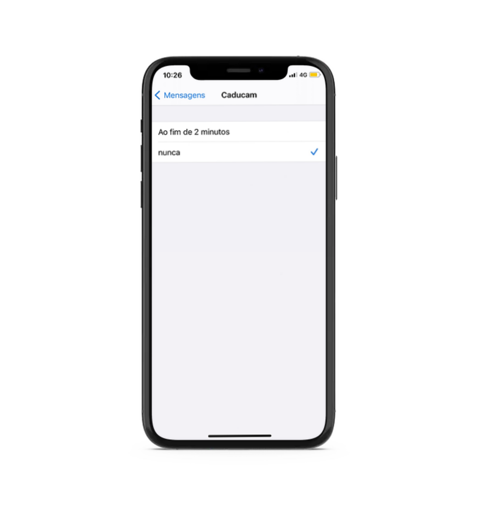 Esta é a opção do iOS13 que te permite guardar até um ano, mas com o iOS14 surge a opção "Nunca", garantindo que os áudios fiquem sempre guardados.