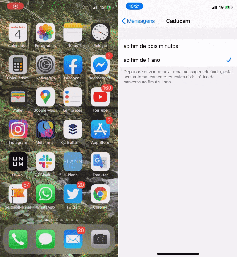 Para impedir que as mensagens de áudio sejam apagadas só precisas de fazer o seguinte: vai a "Definições", entra no menu "Mensagens" e procura pela seção das "Mensagens de Áudio". Aqui onde diz "Caducam" só tens que alterar de "ao fim de dois minutos" para "ao fim de 1 ano".