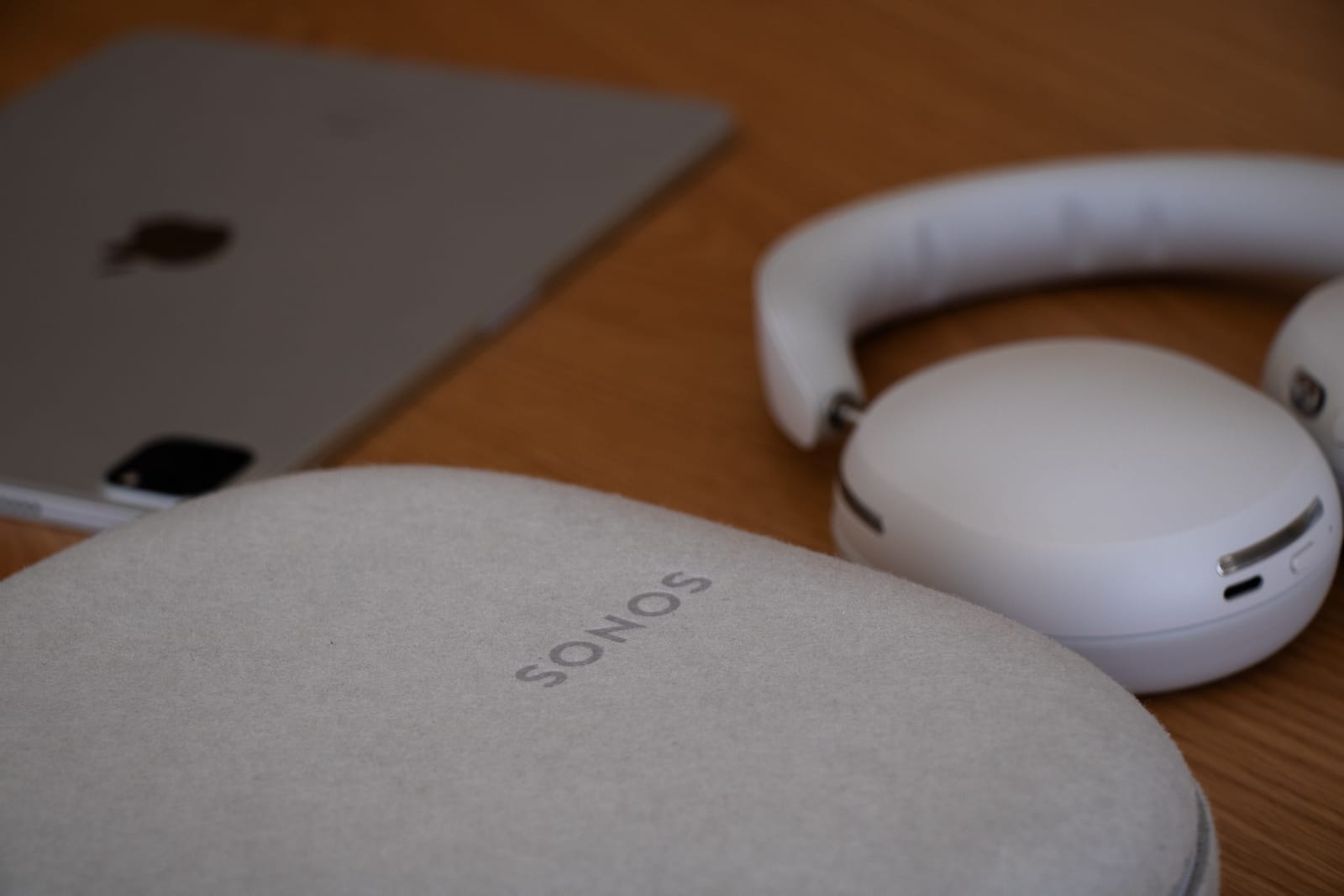 Os novos Sonos Ace são, acima de tudo, confortáveis. Fofos até. A caixa onde o mesmo pode ser armazenado – o chamado estojo – é prático, muito simples, e aveludado. Do mesmo modo, é nesse estojo que podes guardar os teus Headphones e o cabo USB-C que usas para carregá-los.