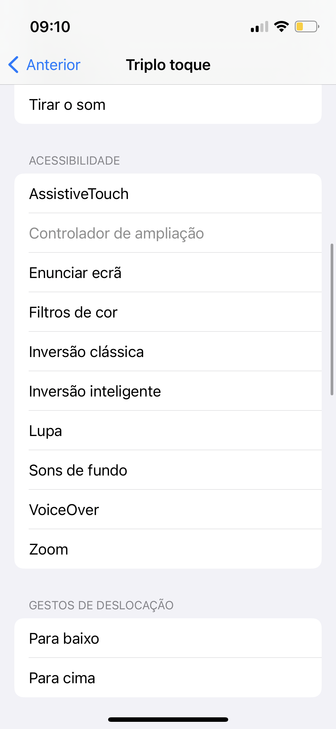 - Faz scroll para baixo e seleciona "Toque na parte de trás";