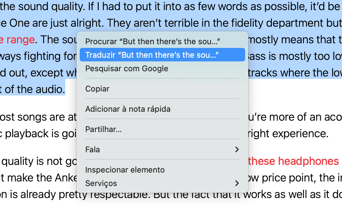 O Safari permite-te traduzir uma página por inteiro ou apenas uma secção de uma página sem necessitar da ajuda de aplicações de terceiros.