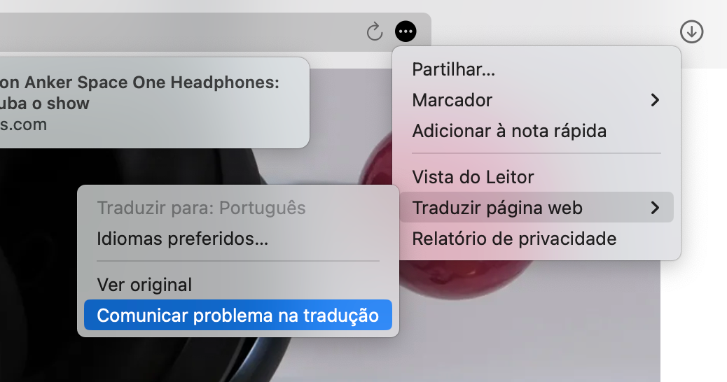 - Clica no ícone e escolhe "Traduzir para Português", dentro das opções disponíveis para a página em que te encontras;