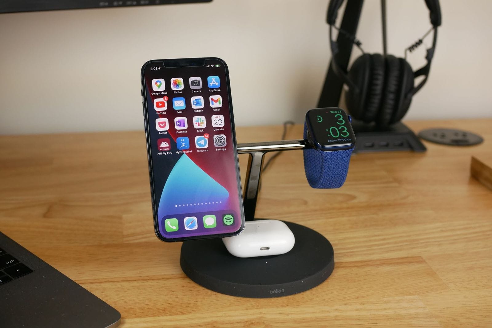 A Belkin é uma delas, que possui um dock 3 em 1 que mantém o teu iPhone e Apple Watch no ar enquanto carrega os teus AirPods em baixo. Ela também já vende um suporte de ventilador de automóvel com MagSafe.