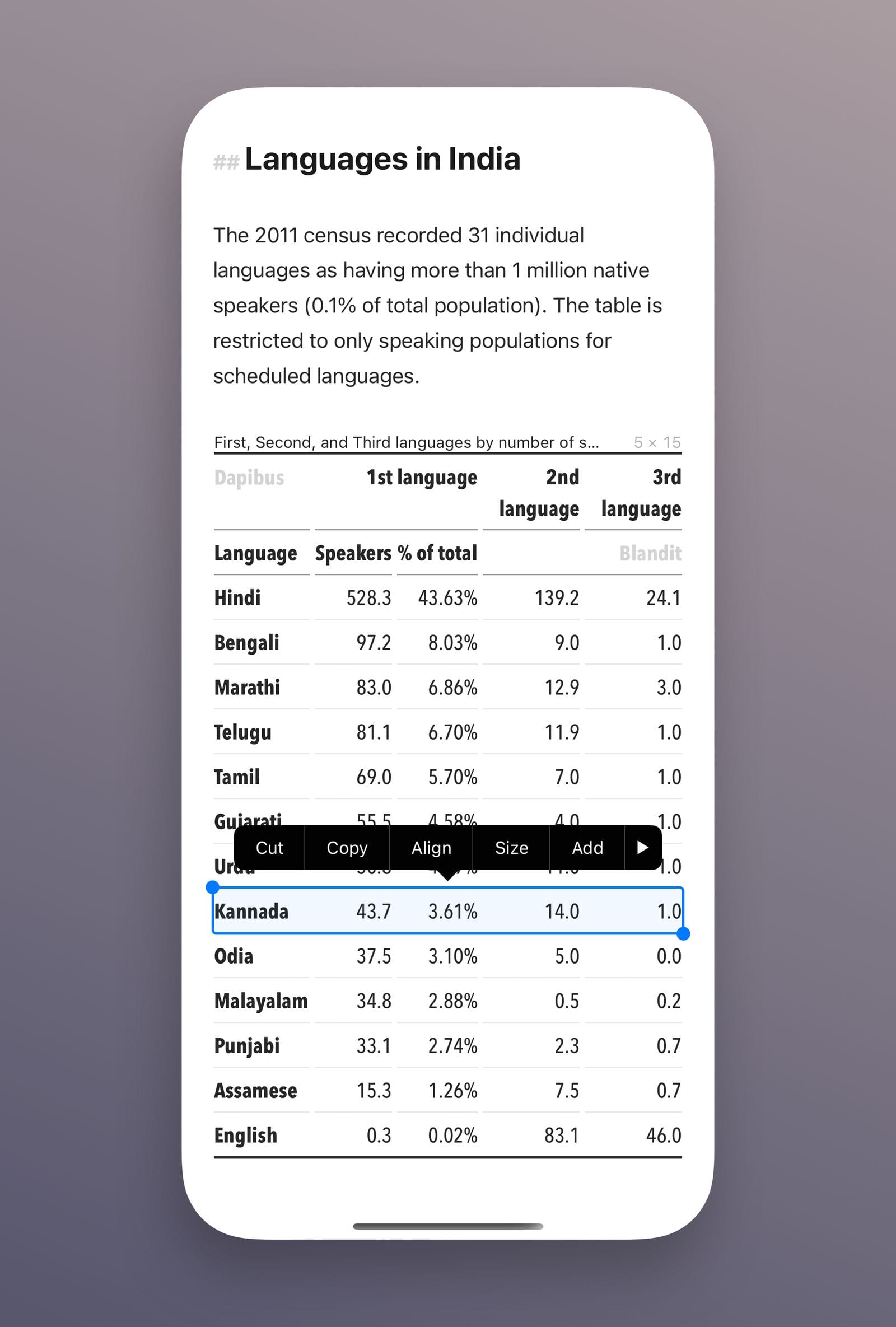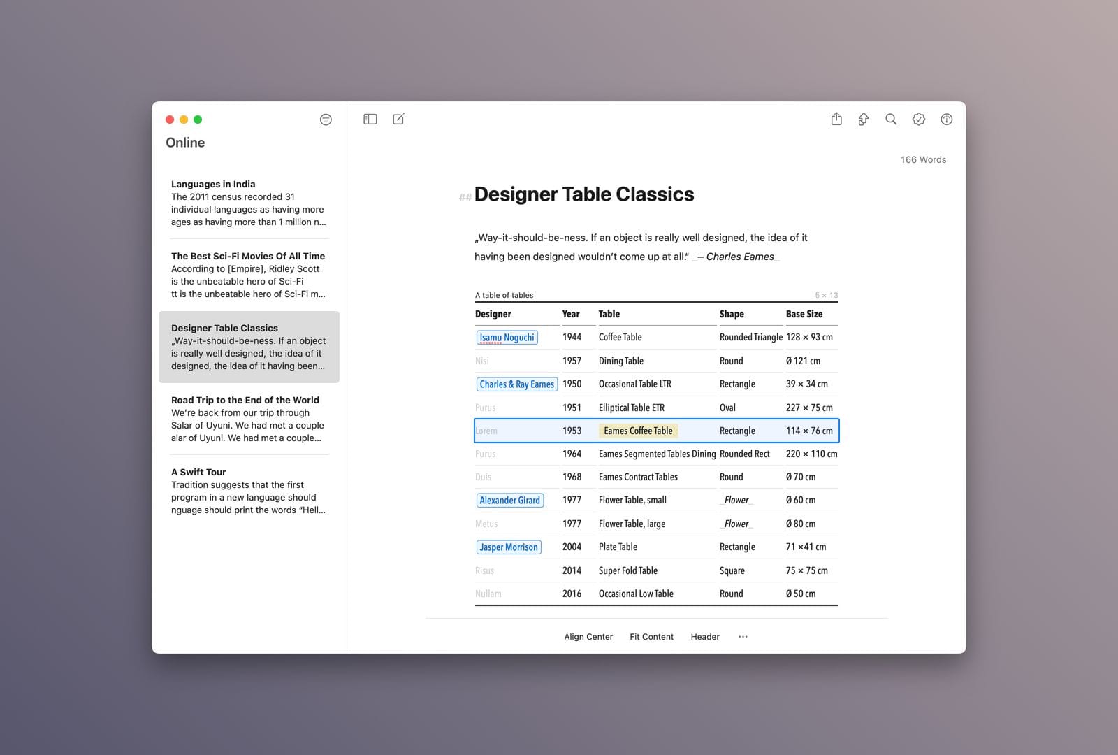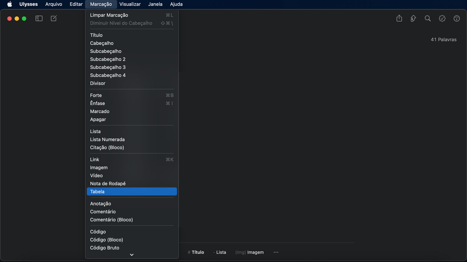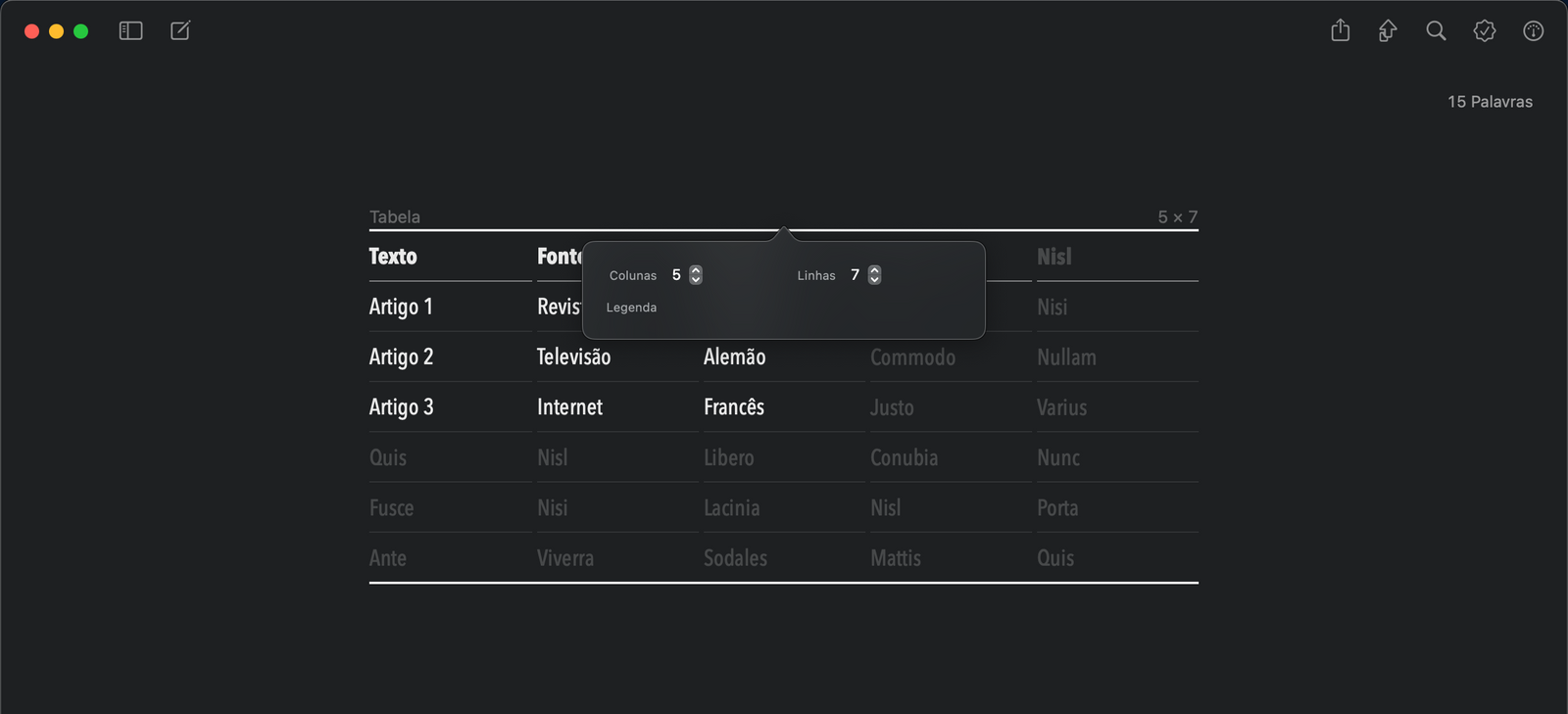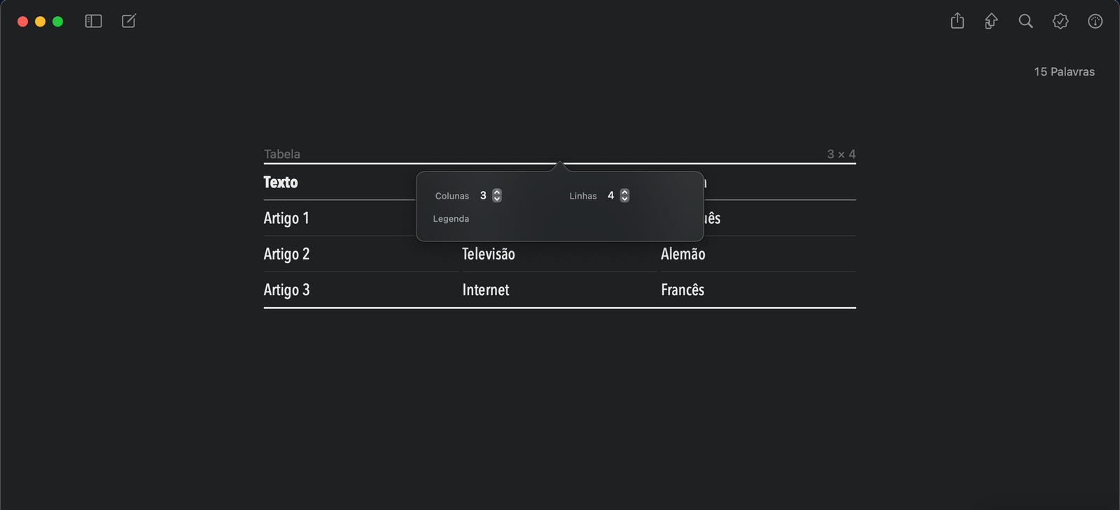 No entanto, há determinados conteúdos escritos aos quais faz falta algo mais, além de texto puro e duro, debitado palavra após palavra. Seja para explicar uma ideia, apresentar uma estatística, ou simplificar a análise de dados por parte do leitor, uma ferramenta sempre útil é a tabela. E na Ulysses é possível criar e configurar tabelas de forma simples e muito intuitiva, como seria de esperar.